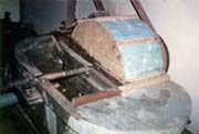 ![]() 打解機に白皮を入れ、苛性澱粉を加えながら1時間ほど叩き、繊維を一本一本に解きほぐします。※1〜7までの複雑な工程が「原料調整作業」で、手漉きにかかる前処理です。 |